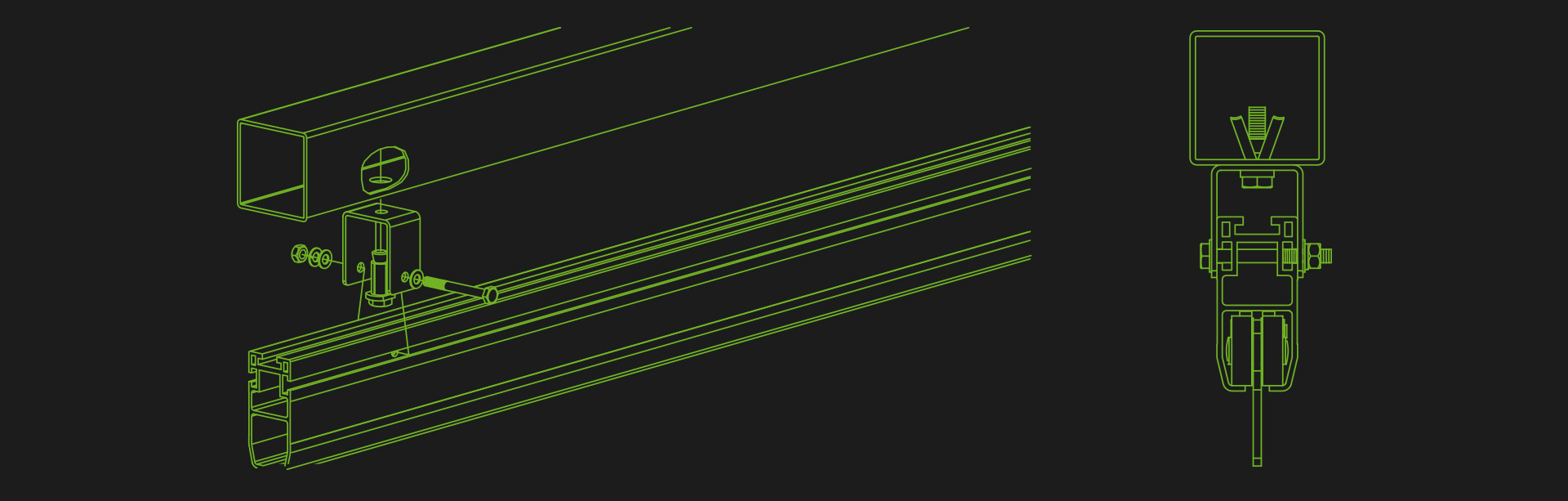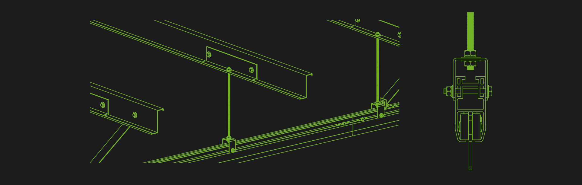 El Sistema Lo-Track™, fabricado en aluminio de alto grado y acero inoxidable, es la solución ideal para tareas en altura que requieran de una protección por encima del operario.