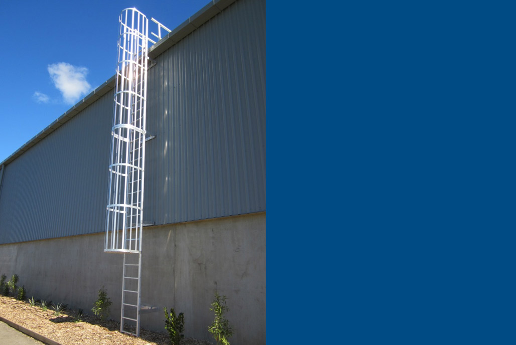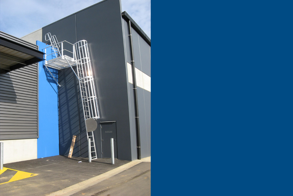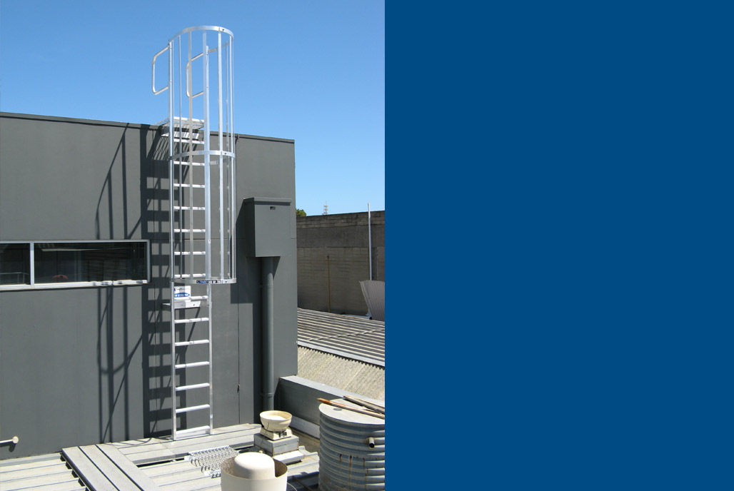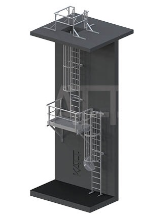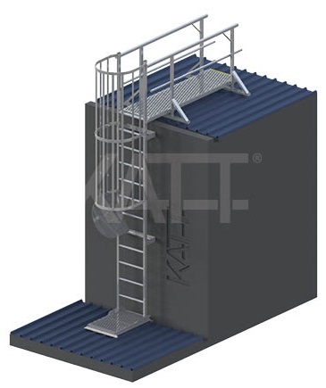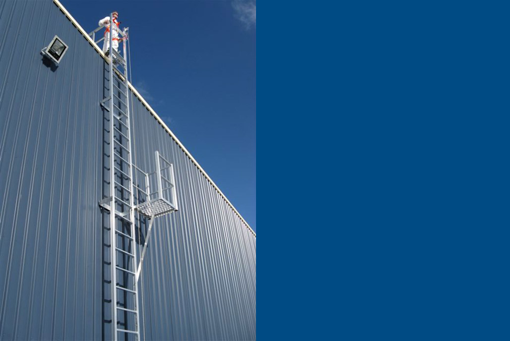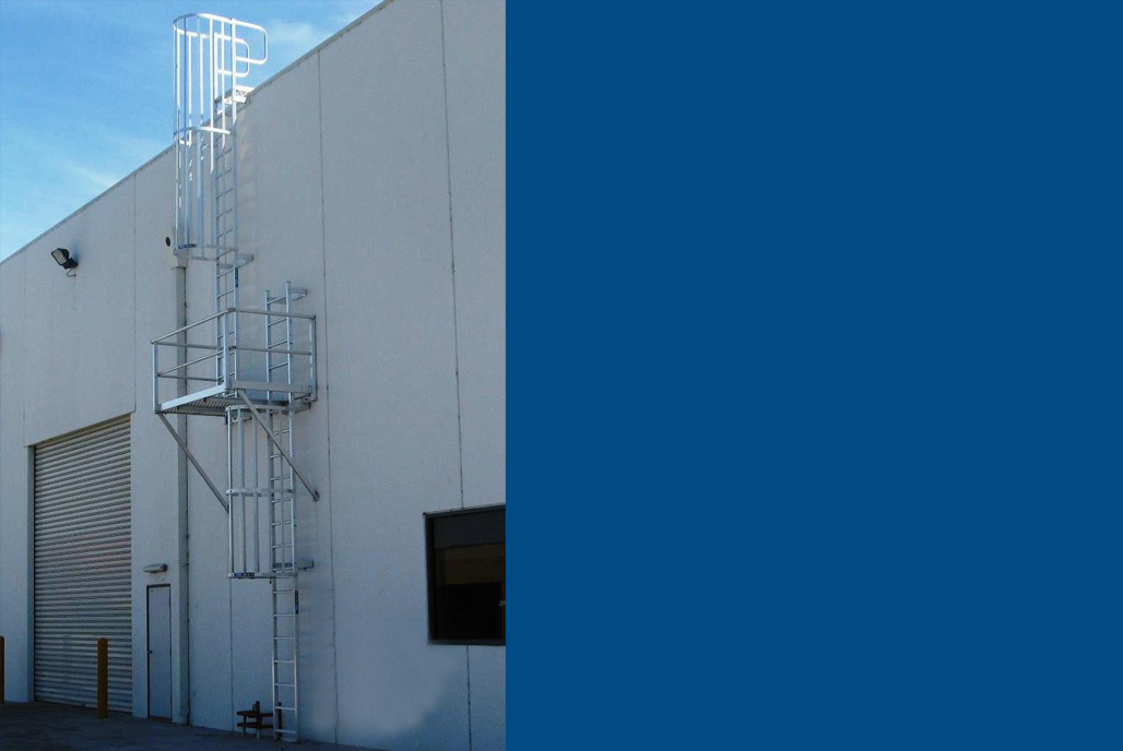 Las escaleras modulares en conjunto con plataformas garantizan un acceso seguro a los techos.